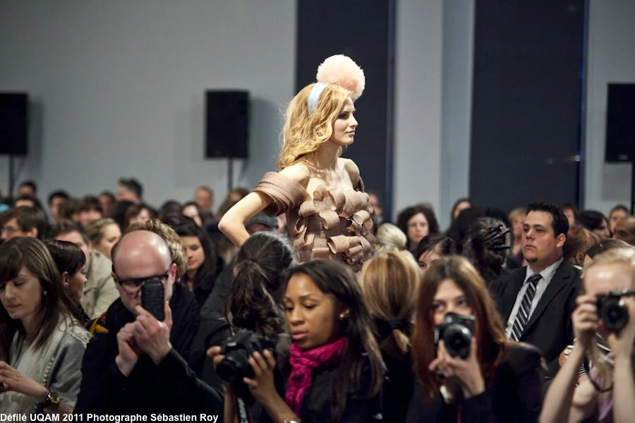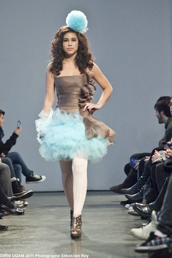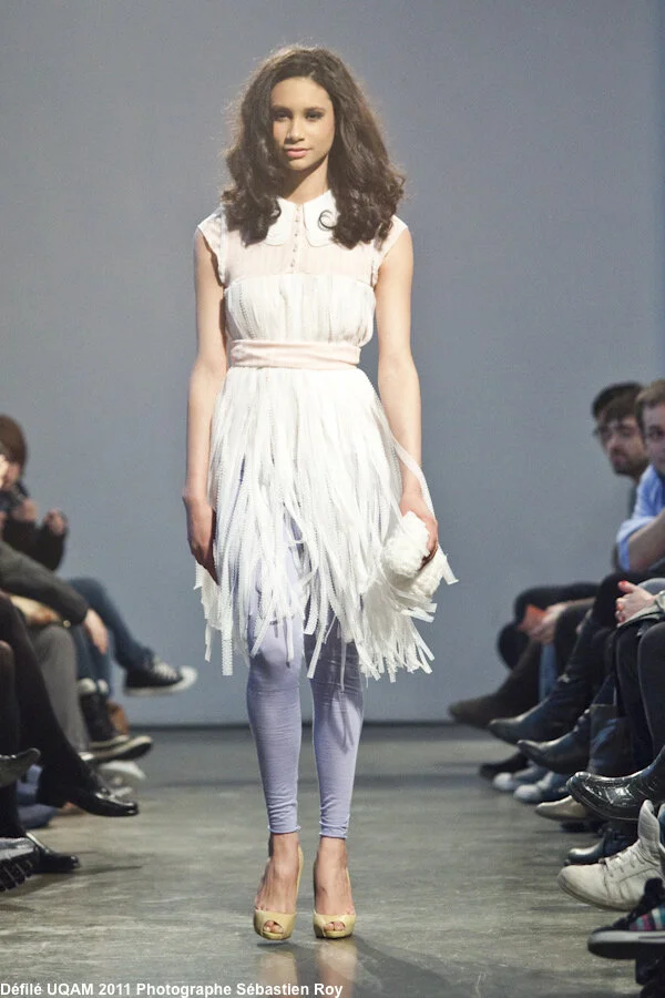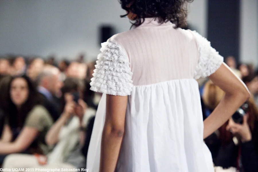 Collection Gamine Photographe : Emile Arragon / Orangerine Directeurs Artistiques : Emile Arragon et Ariane Valade Designer et styliste : Ariane Valade Mannequins : Mélanie Allaire, Marie-Soleil Blanchet, Safie Diallo et Eliane Sauvé Maquilleuse : Annabelle Mercier Fillion, coiffure/maquillage Coiffeuses : Sami Hoyle et Laurence Viau Assistant à la direction artistique : Jean Bui Location : La Baraque Photographe du défilé : Sébastien Roy, Pavillon de design de l’UQAM / Archive 2011